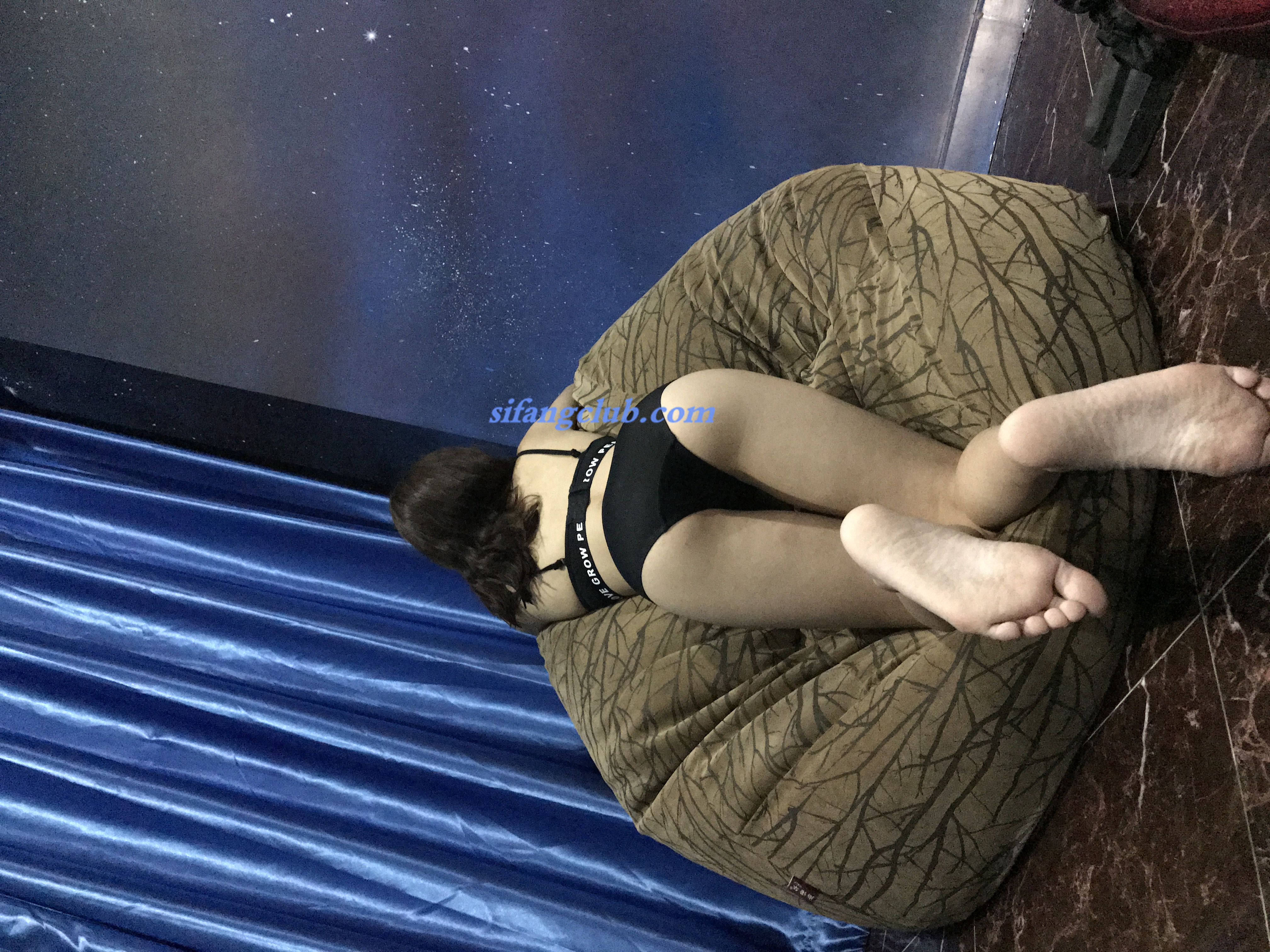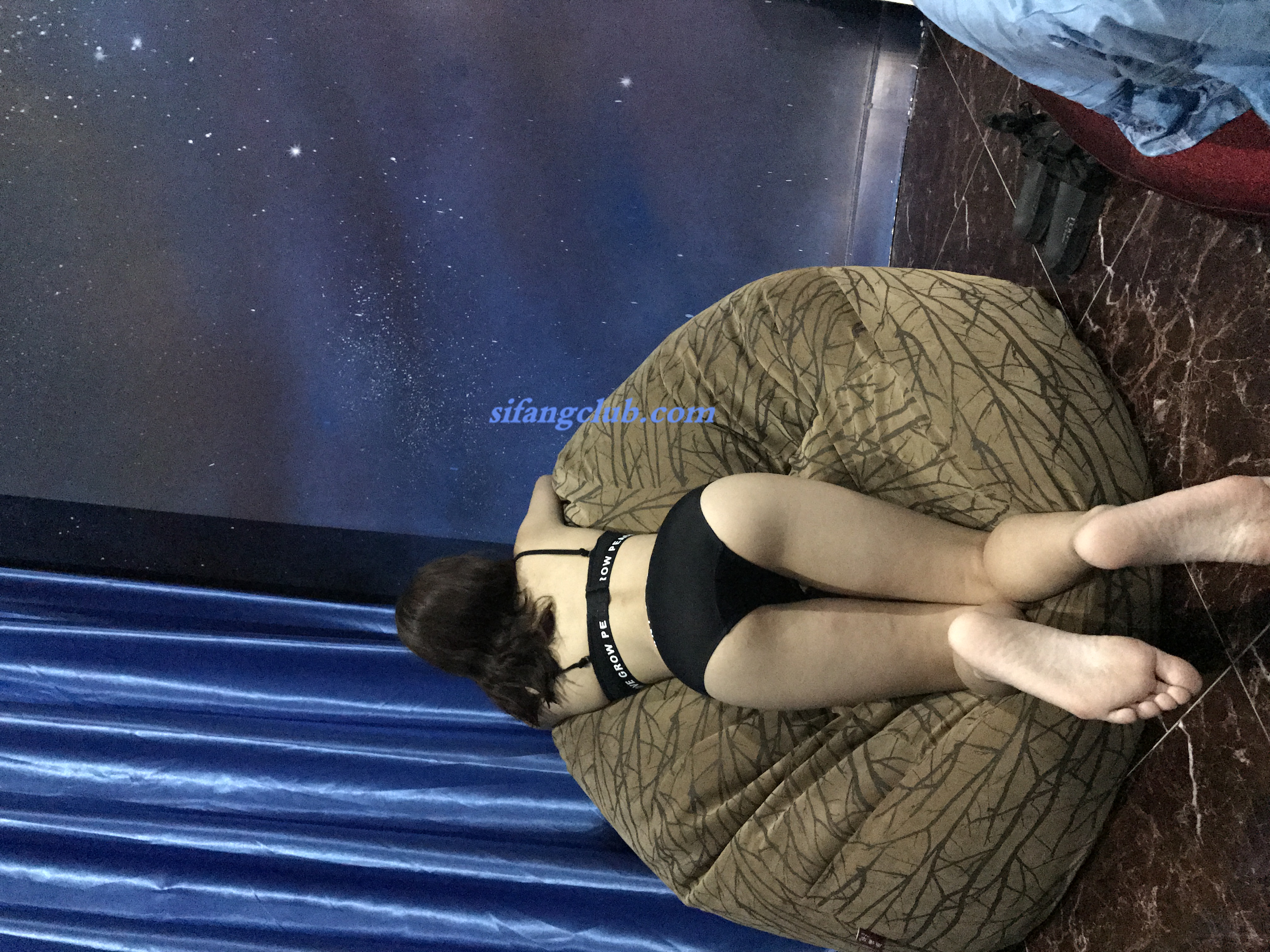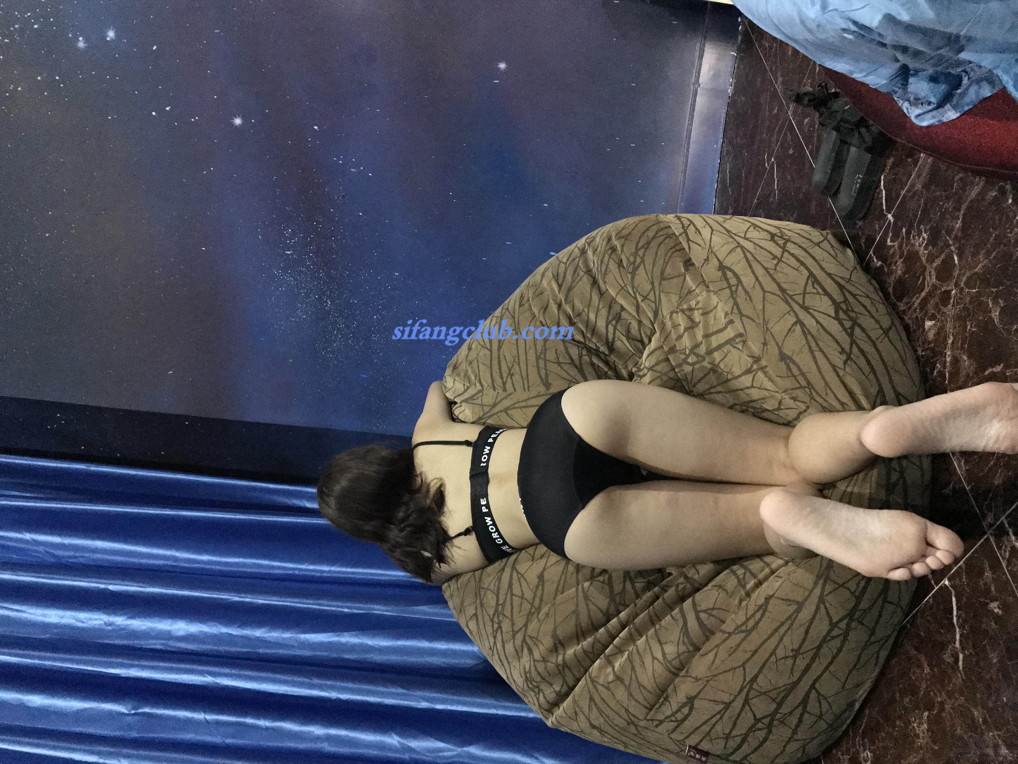 米线私房福利图集—黑色皮衣条纹黑丝