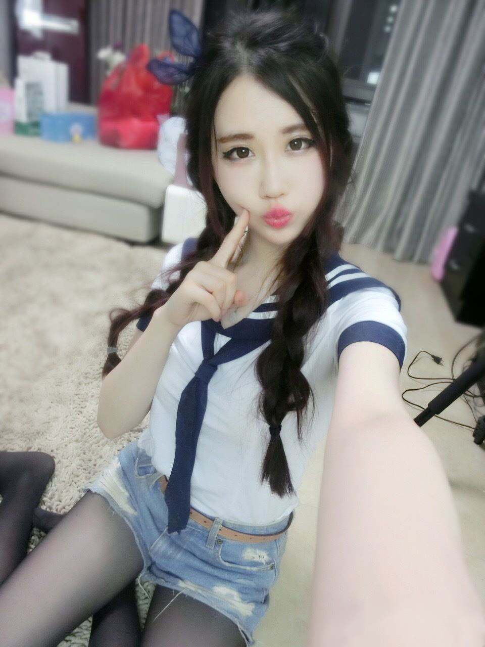 米线私房福利图集—蓝白女仆装