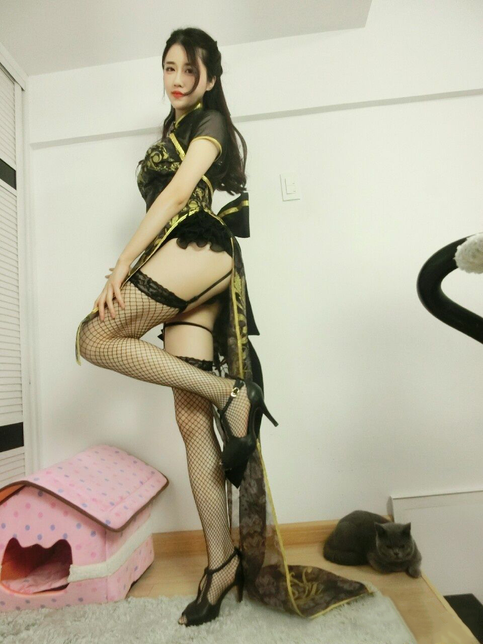 完具酱——灰色网袜连衣裙