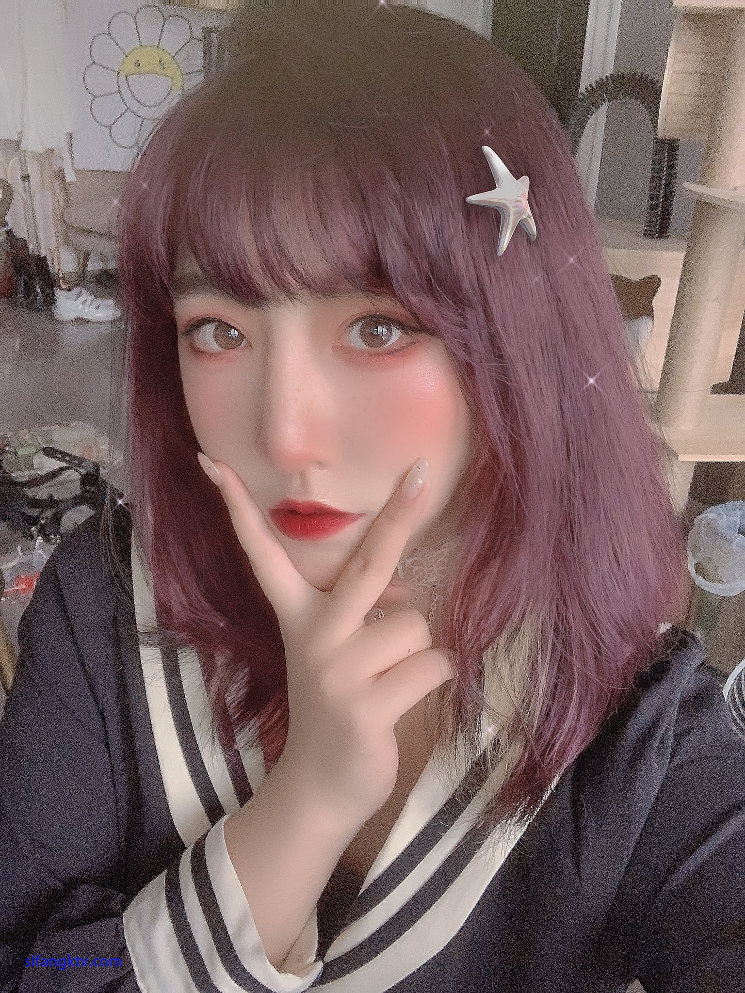 米线私房福利图集—蓝白女仆装